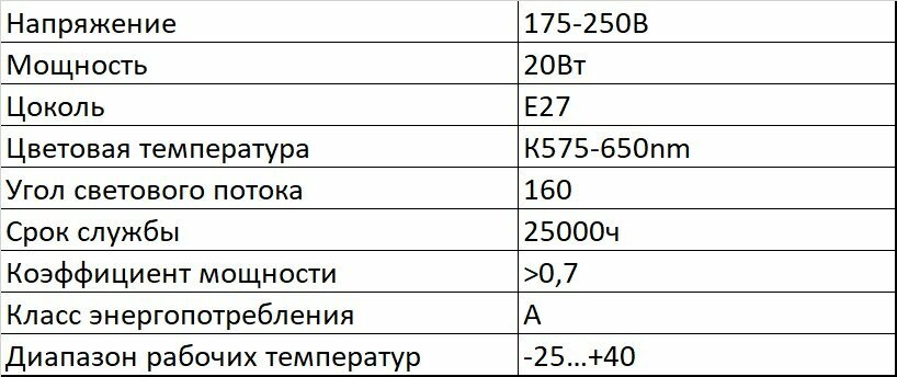 | Тип цоколя | E27 |