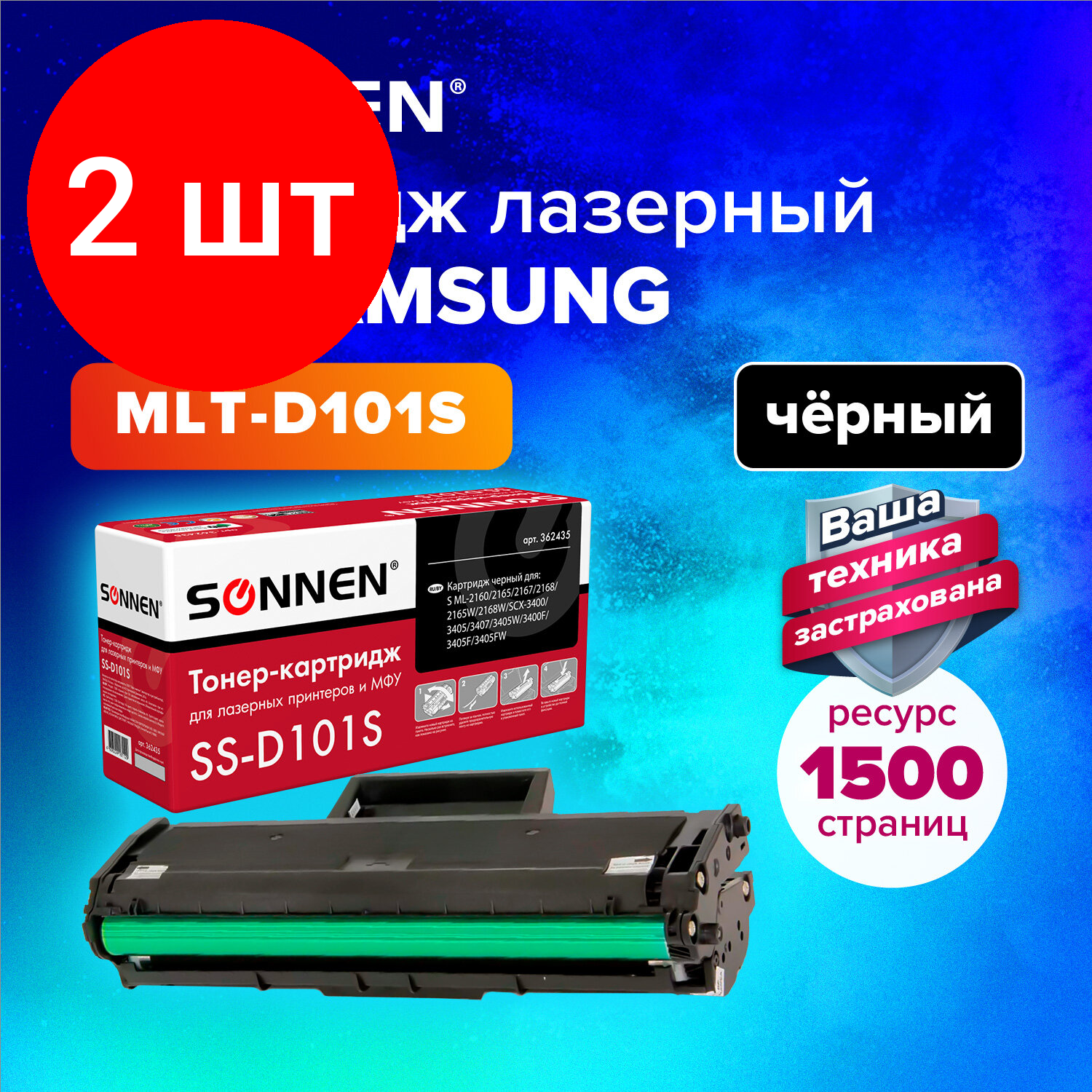 10 цен на Комплект 2 шт, Картридж лазерный SONNEN (SS-D101S) для SAMSUNG ML2160-2168/SCX-3400/05-07, высшее качество, ресурс 1500 стр., 362435