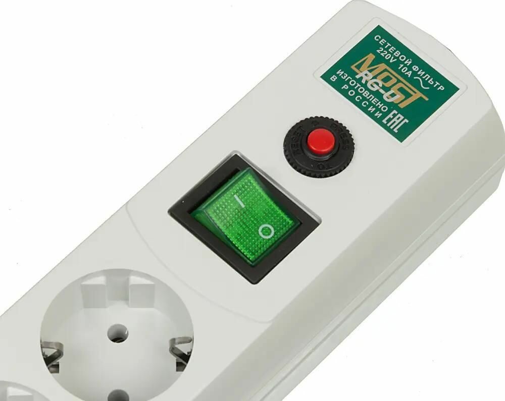 Сетевой фильтр MOST Real RG-U, 6 розеток, с/з, 10А / 2200 Вт белый 3 м 380 мм 60 мм 50 мм 6