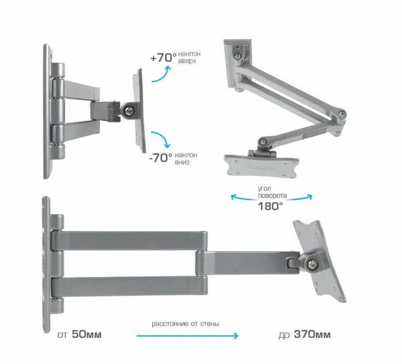 10 цен на Кронштейн для телевизора Arm Media LCD-7101, 10-26", настенный, поворотно-выдвижной и наклонный, серебристый [10013]