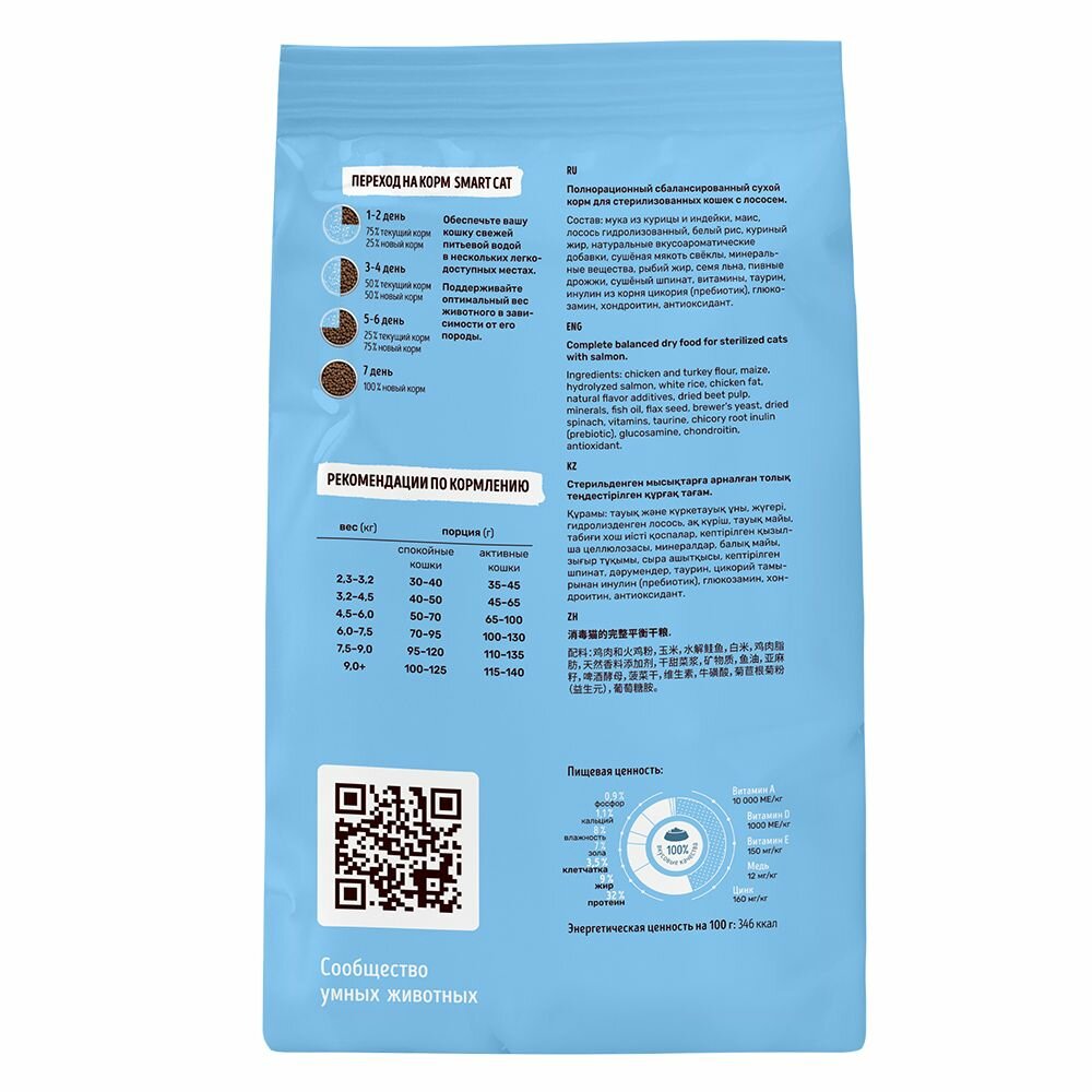 Smart Cat сухой корм для взрослых стерилизованных кошек и кастрированных котов, с лососем - 0,4 кг 444 ₽