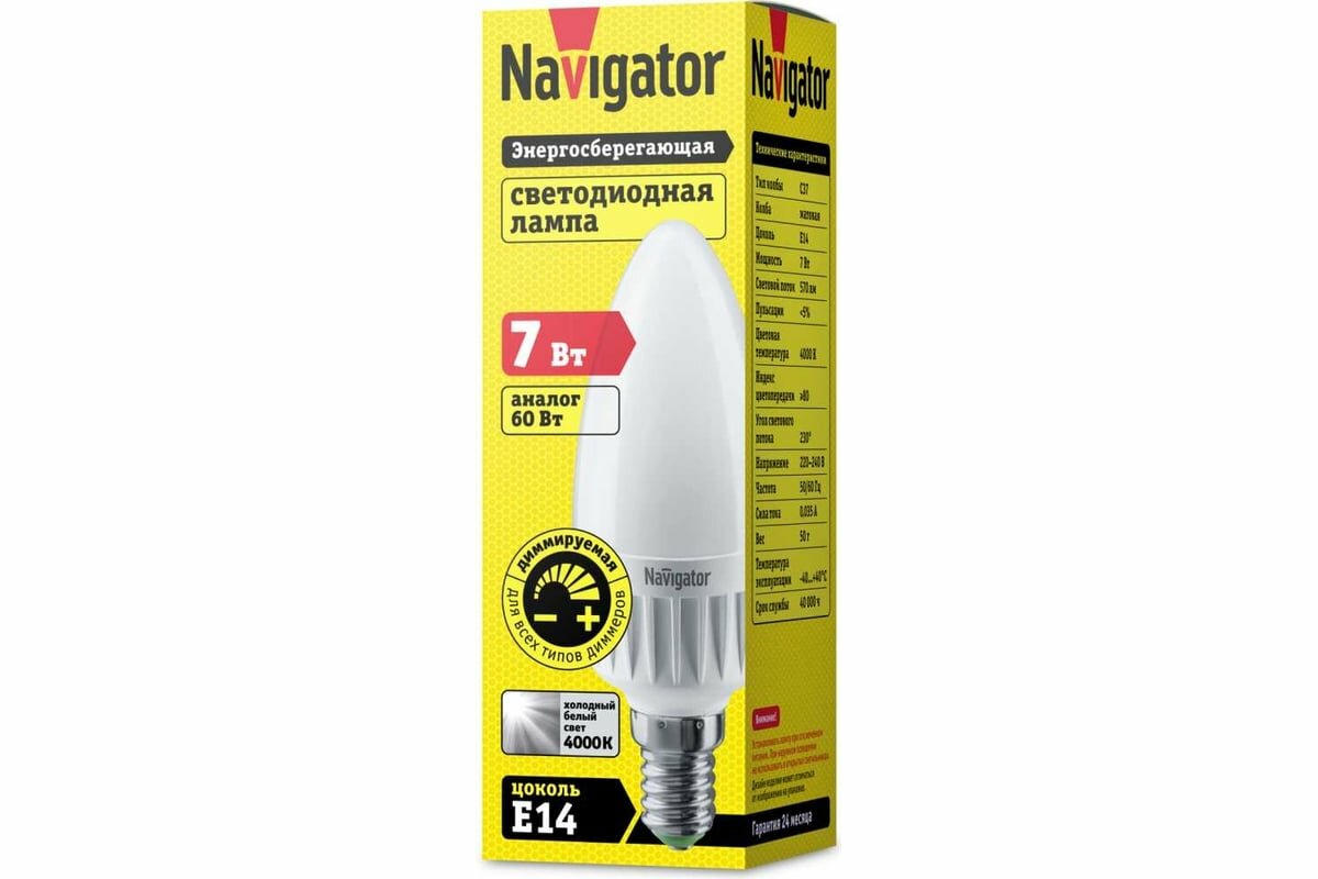 Диммируемая светодиодная лампа Navigator 61 380 NLL-C37-7-230-4K-E14-FR-DIMM, цена за 1 шт.