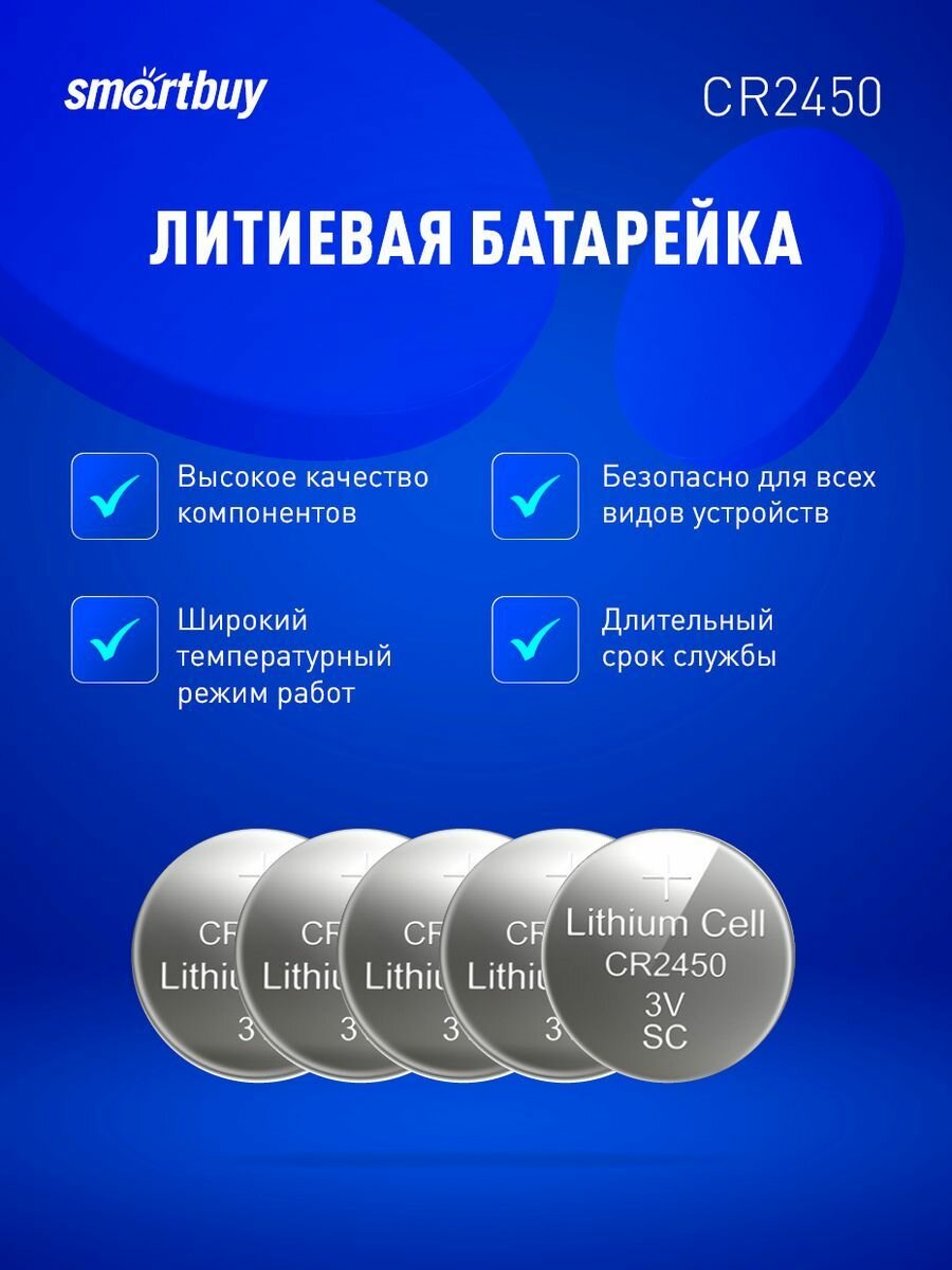 Литиевый элемент питания Smartbuy CR2450, 5 шт.