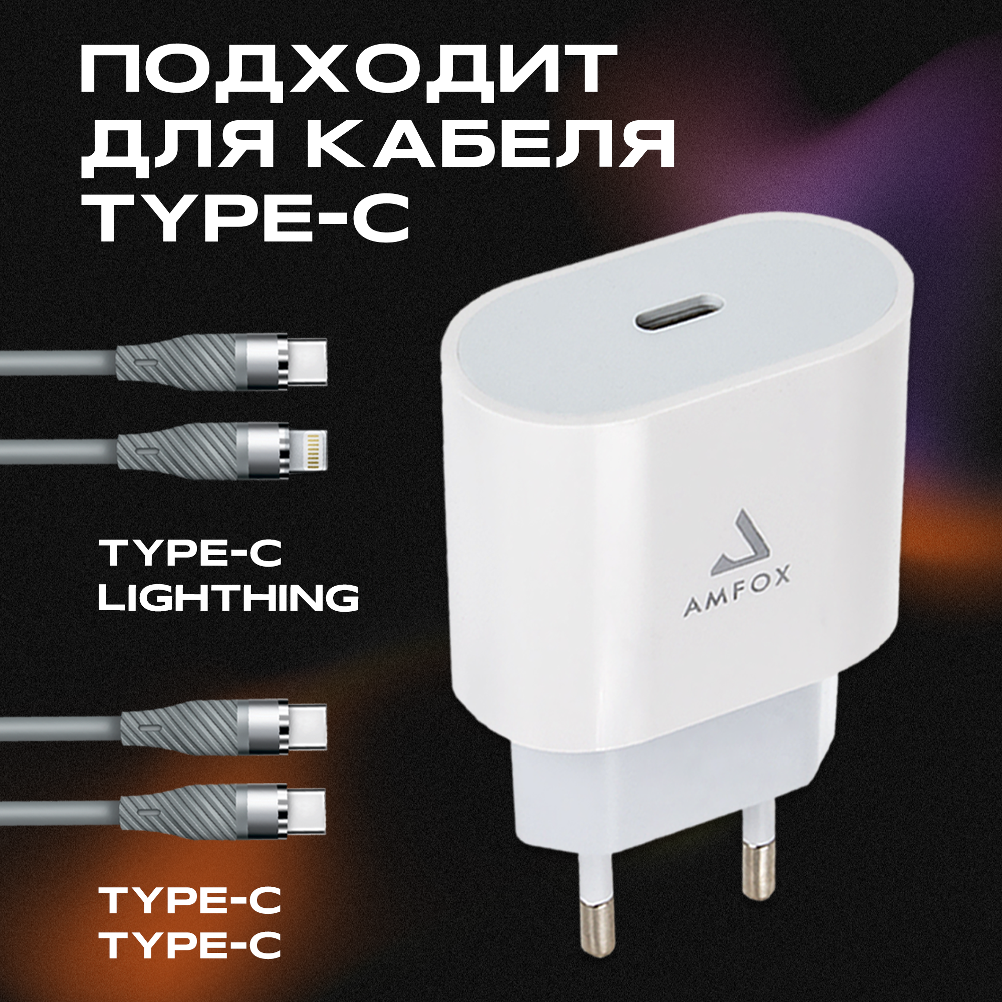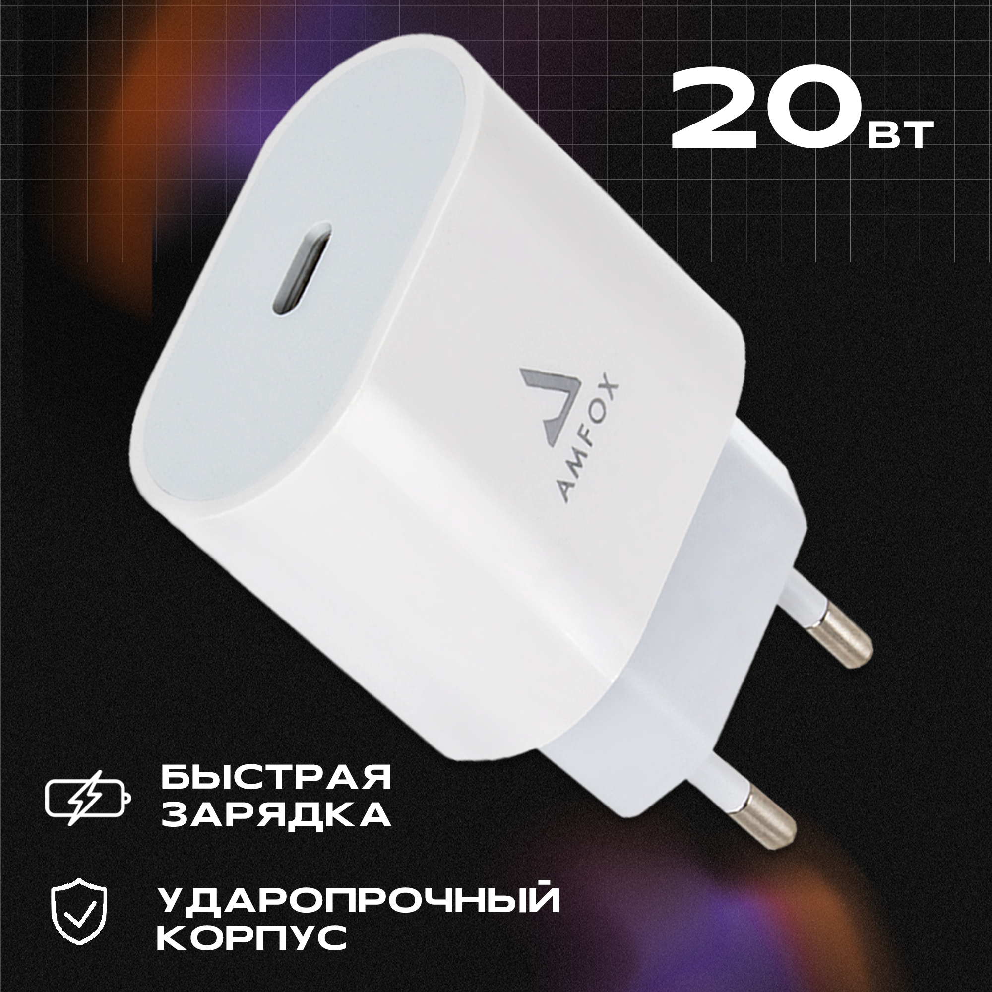Сетевая зарядка для телефона AMFOX AH-20 универсальная с разъемом Type-C, 20 Вт, зарядное устройство, блок питания адаптер айфона, белый 450 ₽