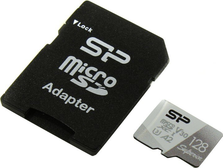 Карта памяти Silicon Power microSDXC 128 ГБ Class 10, V30, A1, UHS-I U3, R/W 100/80 МБ/с, адаптер на SD