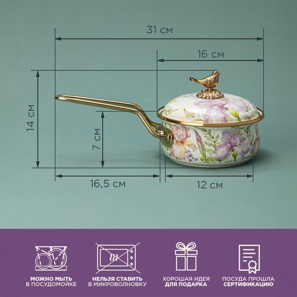 Ковш agness эмалированный, серия irises 14см/0,9л d 14 см длина 31см подходит для индукцион KSG-950-570 информация: