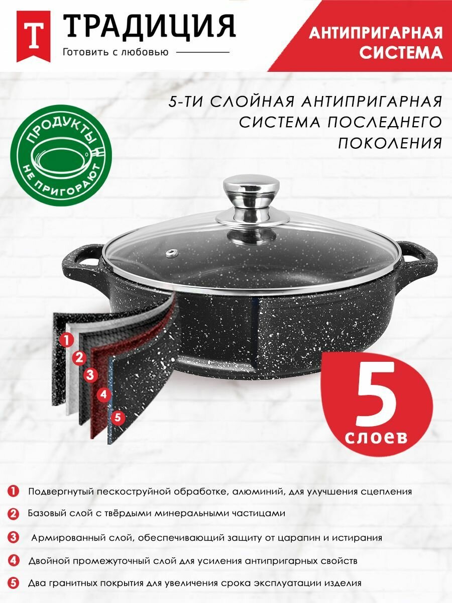 Сотейник жаровня с крышкой 3,5л/28см ТМ традиция Доломит с каменным покрытием, Россия + Лопатка в подарок
