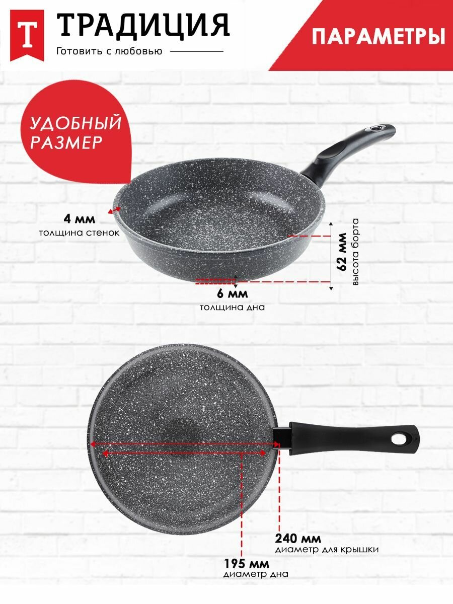 Сковорода Традиция Доломит 24х6см антипригар.литой алюминий, ручка съемная 5 117 ₽