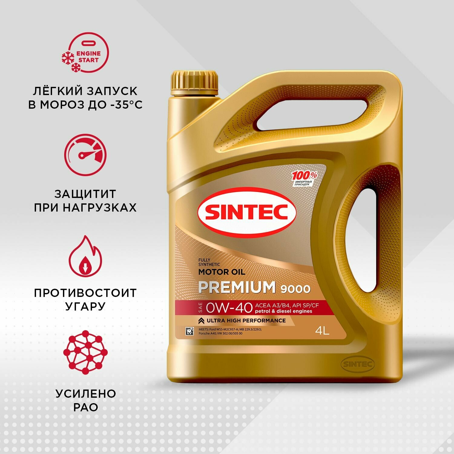 Sintec PREMIUM 9000 SAE 0W-40 API SP/CF, ACEA A3/B4 Акция 5л по цене 4л (600277) информация: