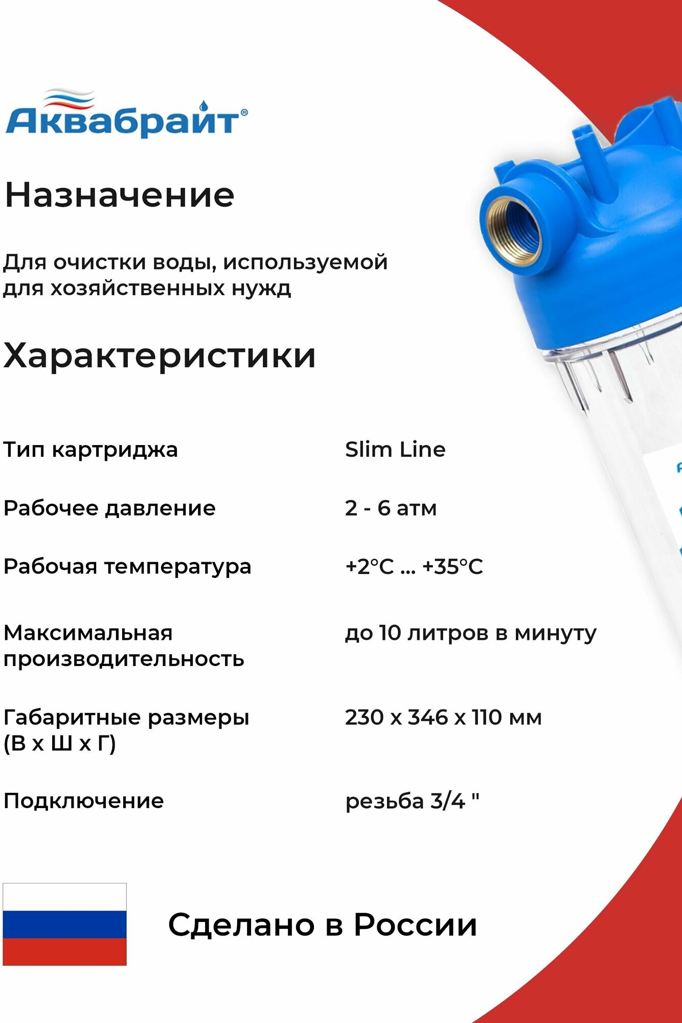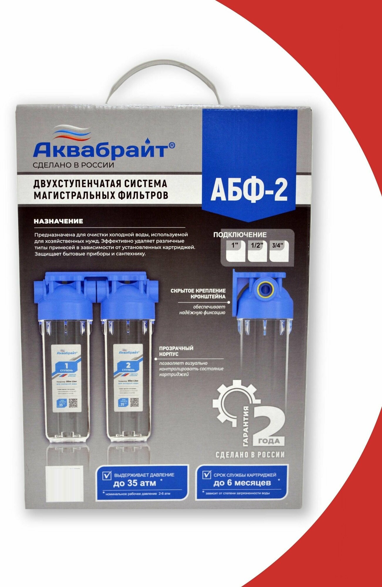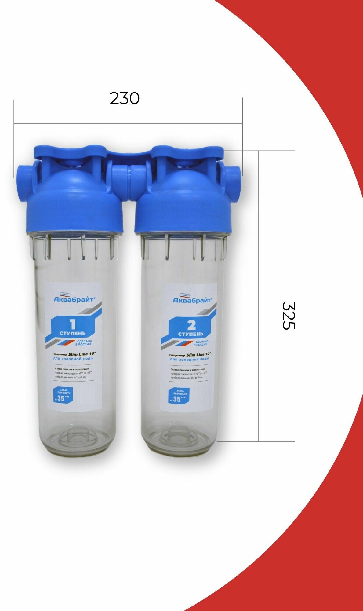 Аквабрайт Фильтр двухступенчатый Slim Line (лат.резьба 3/4, кронштейн и ключ в комплекте) АБФ-2 3/4 информация: