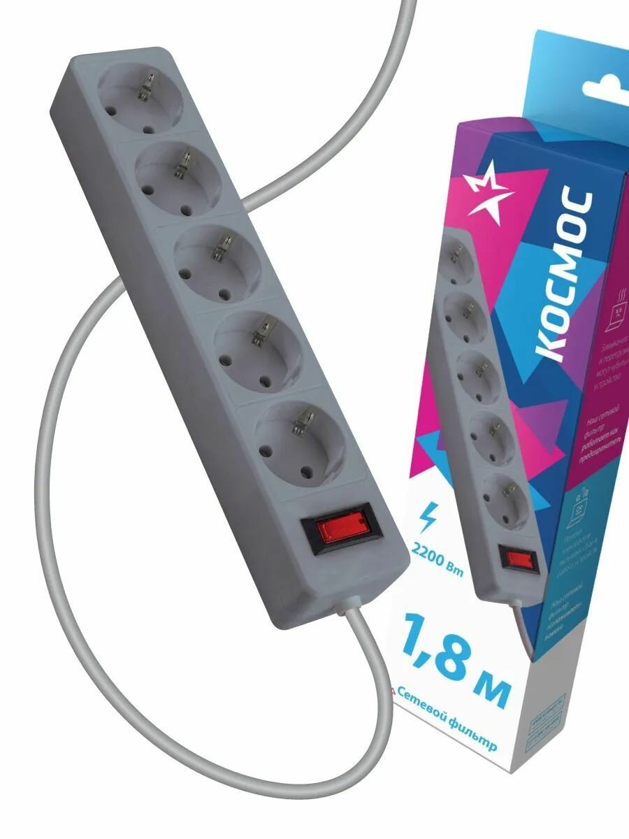 Сетевой фильтр Космос 1 8 м 5 розеток пвс 3х0 75мм2 серый