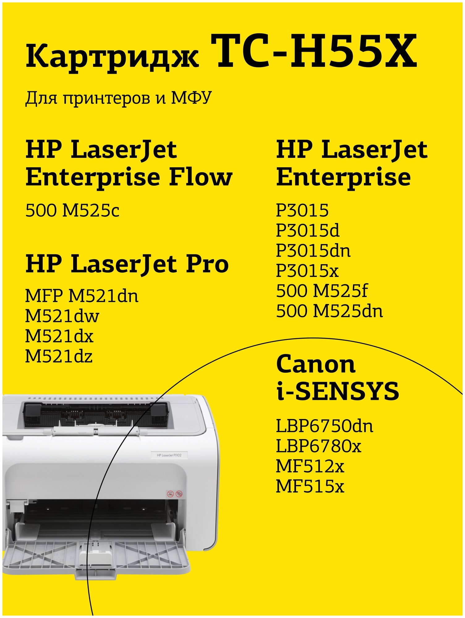 T2 CE255X/724H Картридж (TC-H55X) для P3015/P3015d/P3015dn/P3015x (12500 стр.) с чипом