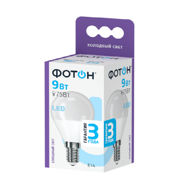 (25 шт.) Светодиодная лампочка Фотон P45 9Вт 220В 6500K E14 информация: