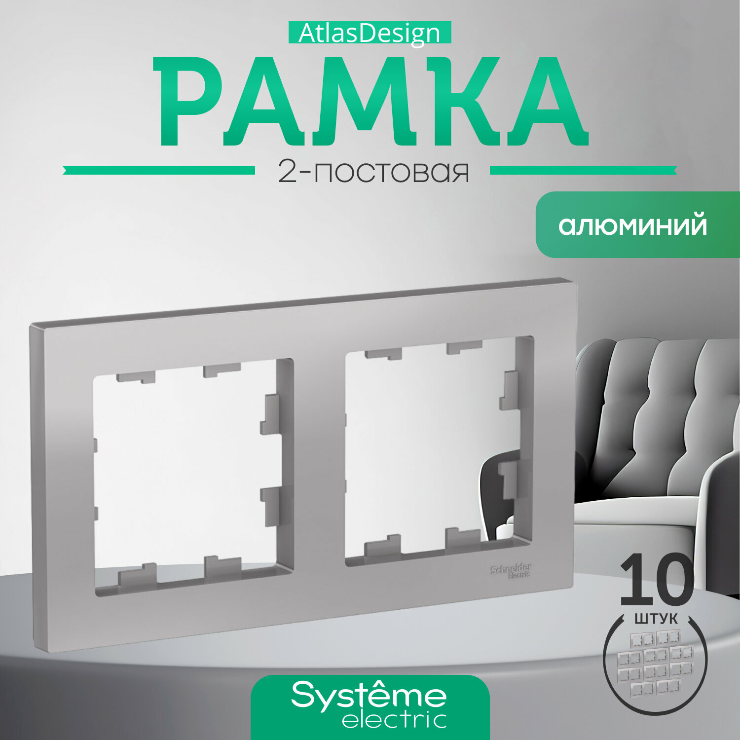 Рамка 2-постовая для розеток и выключателей 10 шт Schneider Electric/Systeme Electric AtlasDesign алюминий Шнайдер ATN000302 информация: