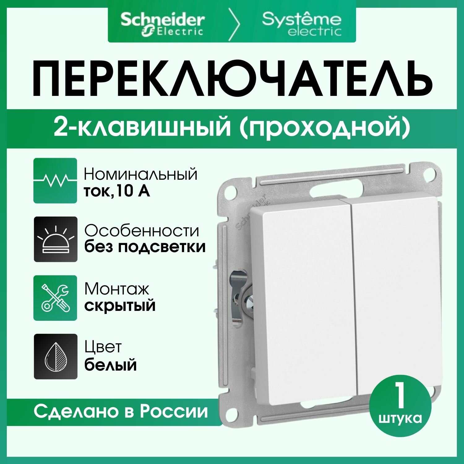 Отзывы на Переключатель двухклавишный (проходной) Schneider Electric Atlas Design белый ATN000165 1 шт
