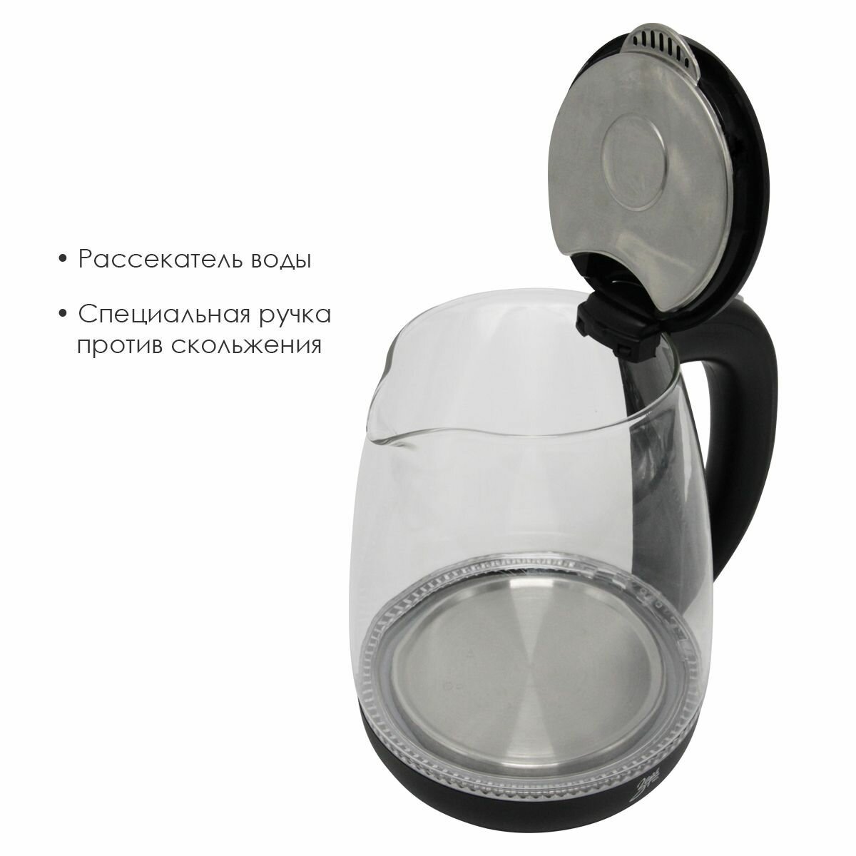 Электрический чайник Заря 258-04 1.8 л / стеклянный / с подсветкой / дисковый ТЭН / автоотключение / поворот на 360 / электрочайник / 1500 Вт / черный 2 395 ₽
