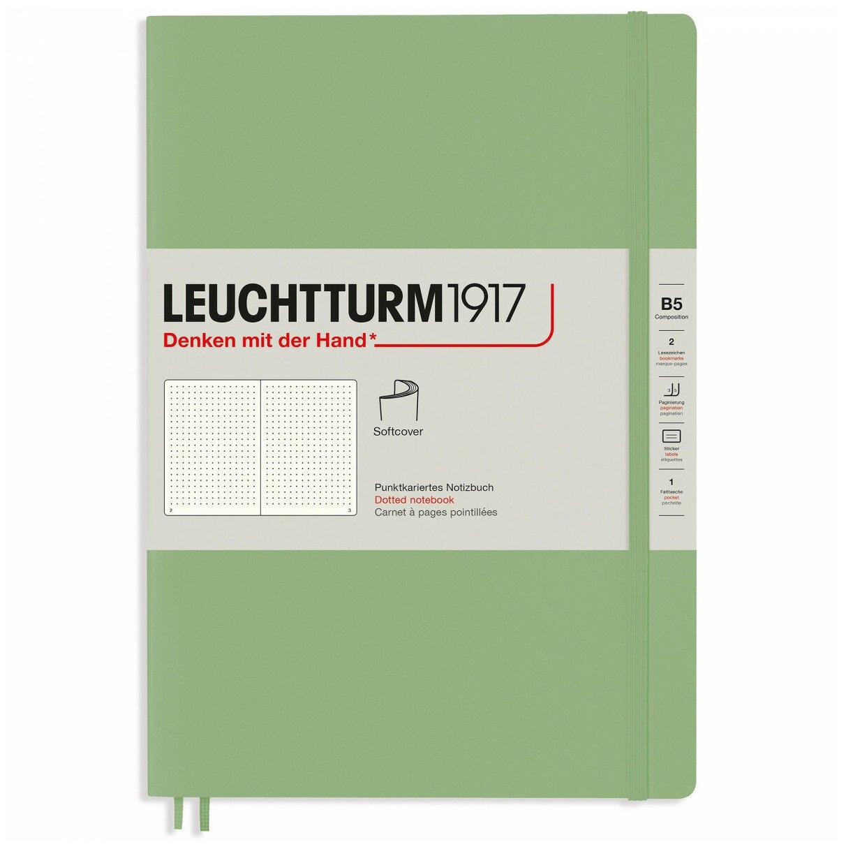 Записная книжка Leuchtturm А5, в точку, пастельный зеленый, 123 страниц, мягкая обложка информация: