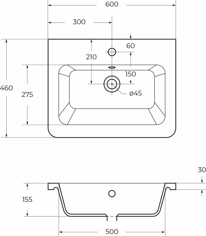 Раковина для ванной Uperwood Barsa 60х45х14,5 см, черная глянцевая