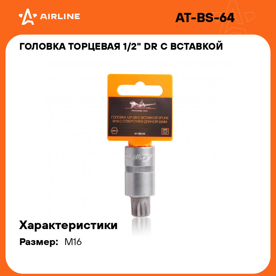 AIRLINE at-bs-64 головка 1 / 2 dr с вставкой spline m16 длиной 55мм (at-bs-64)
