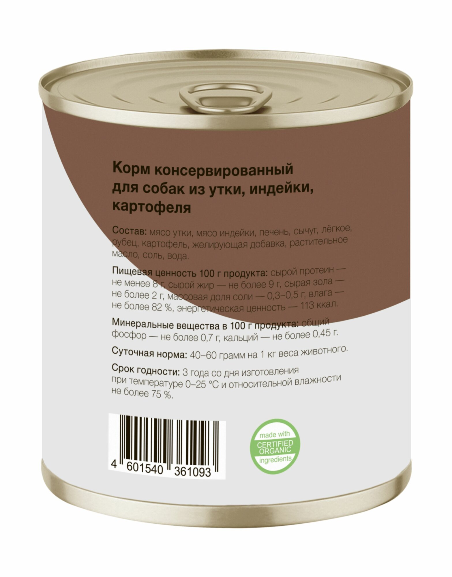 Консервы для собак Утка, индейка, картофель 0,1 кг информация: