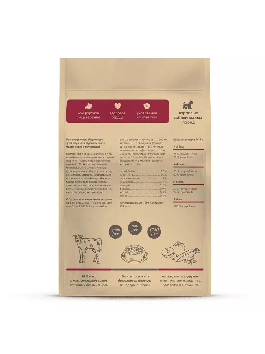 Корм сухой для собак мелких пород телятина 1 шт 1кг информация: