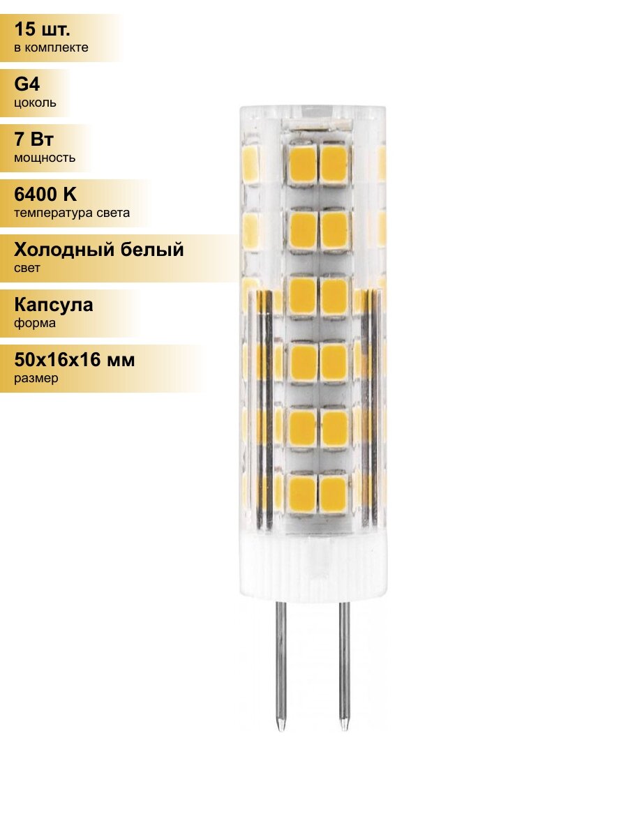 (15 шт.) Светодиодная лампочка Feron G4 230V 7W(600lm) 6400K 6K 220V 50x16 прозрач. LB-433 25865 Холодный белый. Цоколь G4 информация: