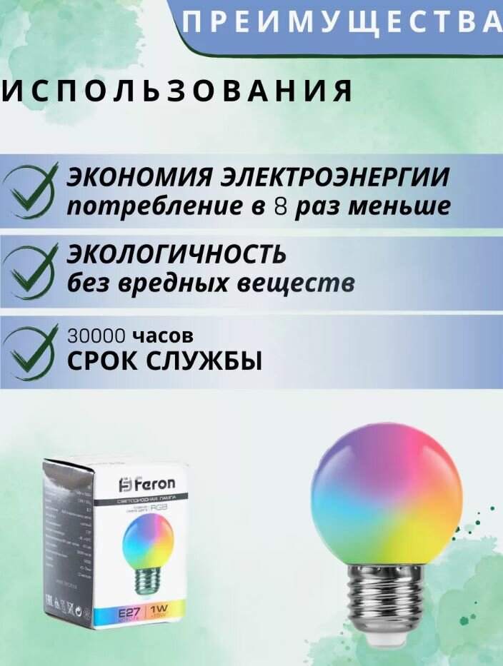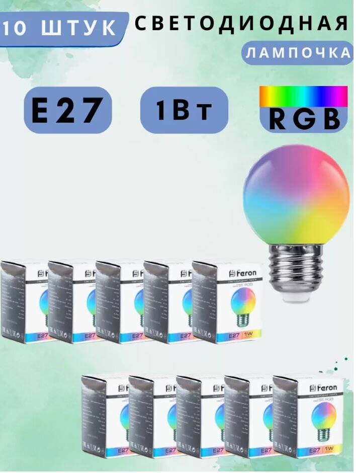 Отзывы на (10 шт.) Светодиодная лампочка Feron шар G45 E27 1W RGB прозрачный плавная смена цвета 70x45 д/гирлянды Белт Лайт LB-37 38132