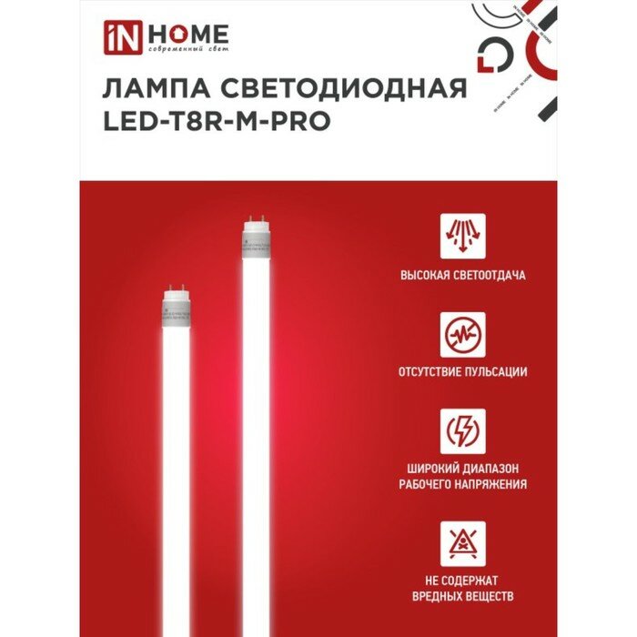 Лампа светодиодная In Home LED-T8R-M-PRO T8 15 Вт 6500K 1500 Лм 220 В 4690612030968, 1689507 386 ₽
