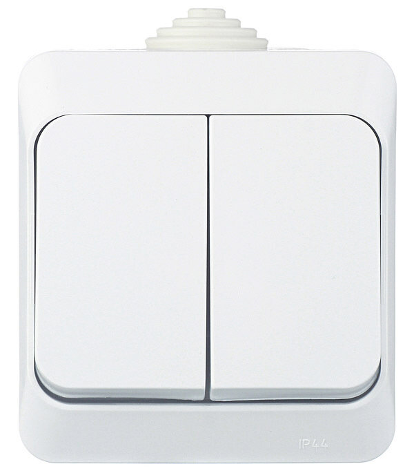 Выключатель двухклавишный Bylectrica Пралеска, брызгозащищенный, открытой установки, 6А, 250В, белый. А5 6-224.