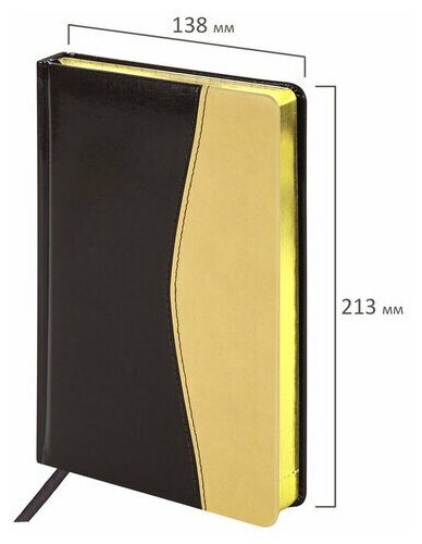Недатированный ежедневник BRAUBERG А5 138x213 мм "De Luxe", комбинированная кожа, 160 л., золотой 123403