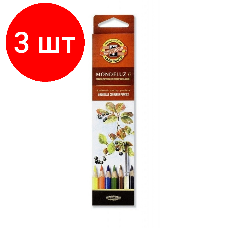 Отзывы на Комплект 3 наб., Карандаши акварельные 6цв./наб. KOH-I-NOOR 3715 MONDELUZ Чехия