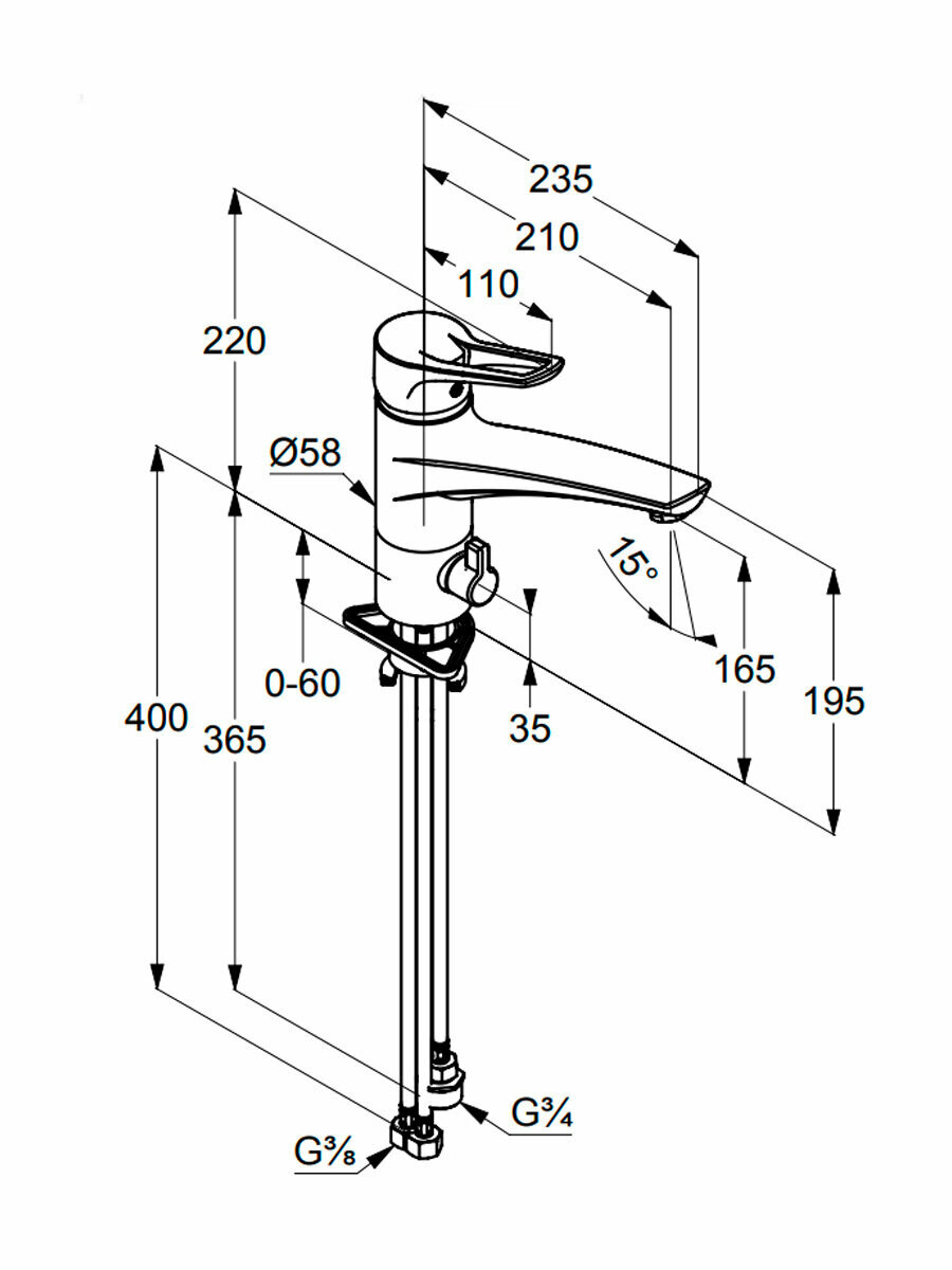 Смеситель для раковины (умывальника) KLUDI Pure&Easy Care 37284 0565, рычажный