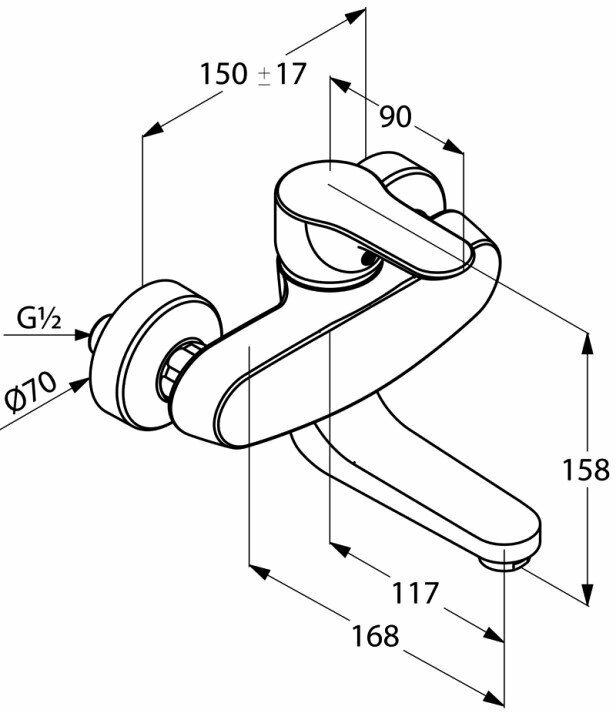 Смеситель на раковину настенный Эверест B46-350 с круглым поворотным изливом, кран-буксы 1/2", хром