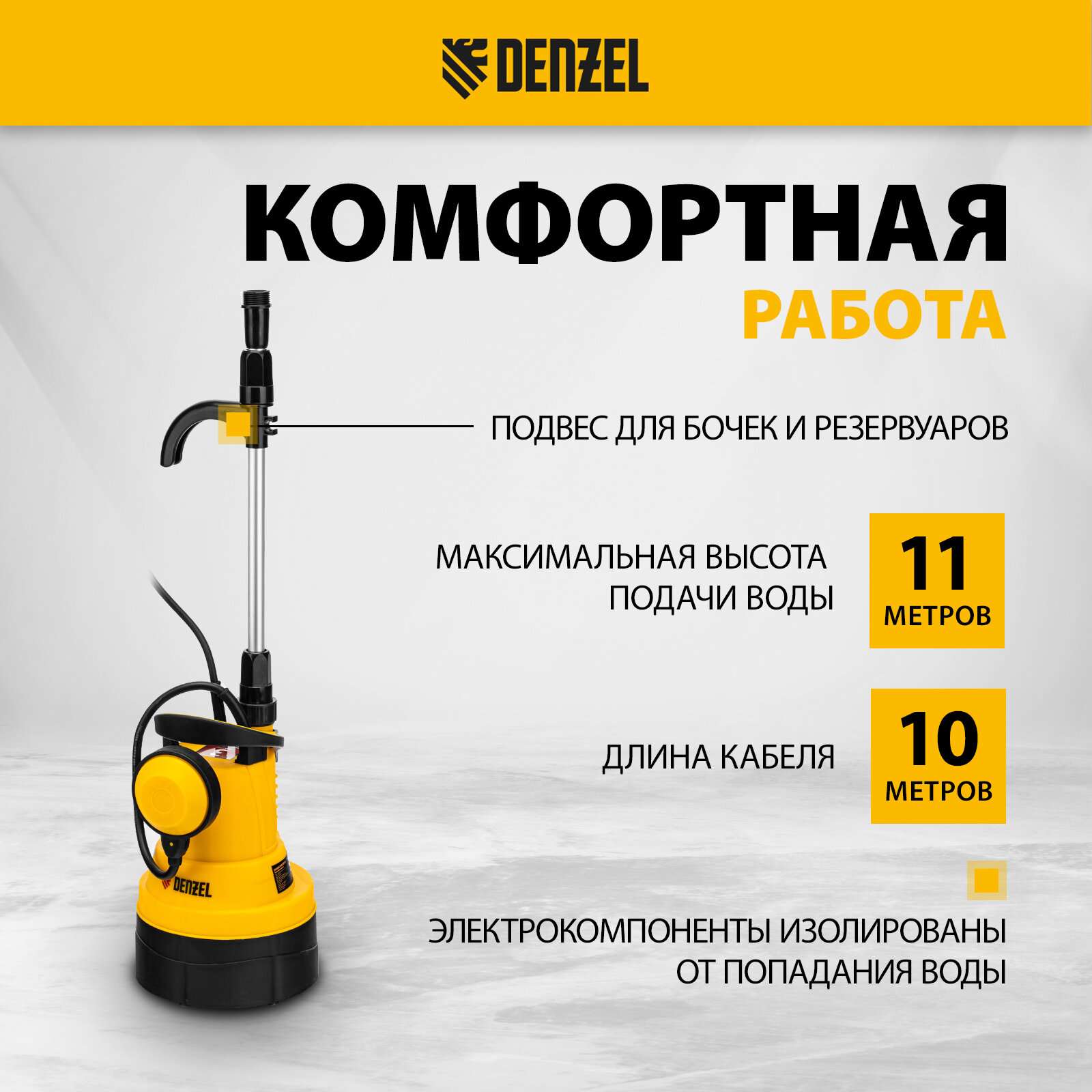 Дренажный насос для чистой воды Denzel DPB400, 400 Вт, подъем 11 м, 5500 л/ч 97266 информация: