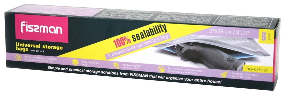 Универсальные пакеты с zip - замком Fissman 27 х 28 см / 3.0 л информация: