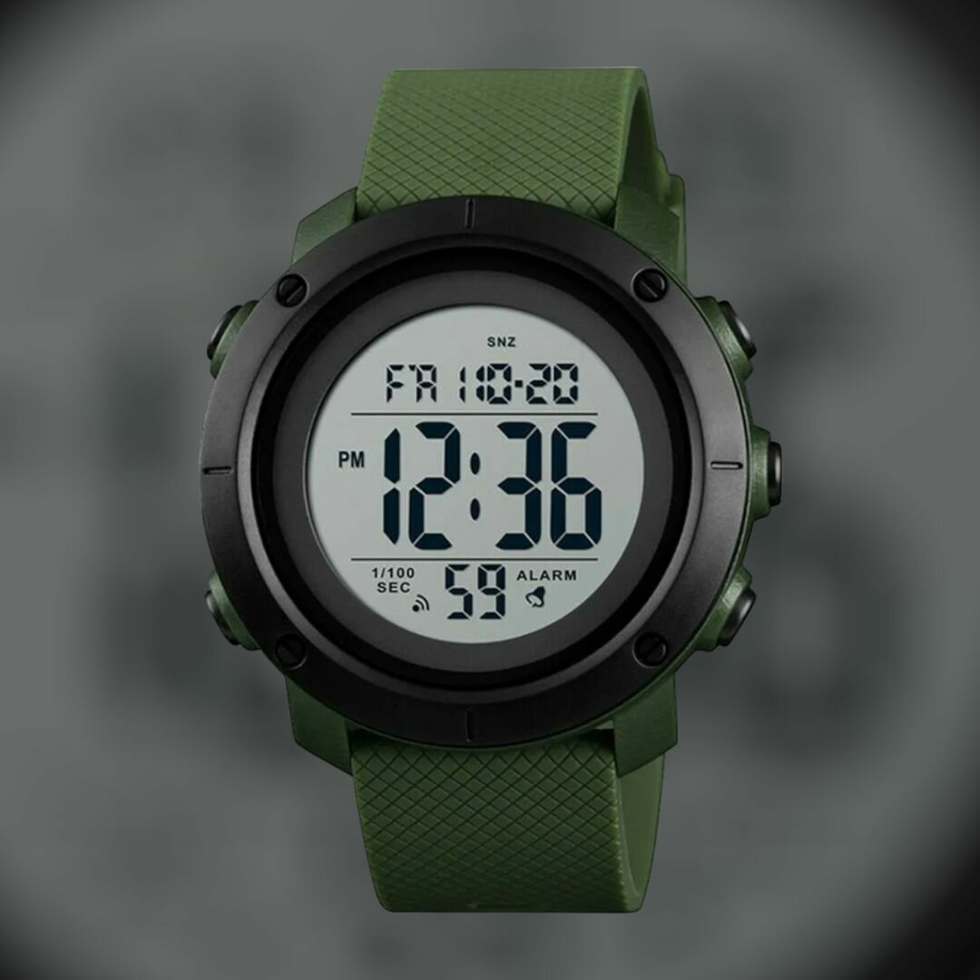 Часы мужские SKMEI 1426, водонепроницаемые, черные/зеленые. Светлый LCD/ 949 ₽