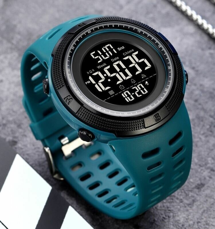 Часы мужские SKMEI 1426, водонепроницаемые, черные/зеленые. Светлый LCD/ 949 ₽