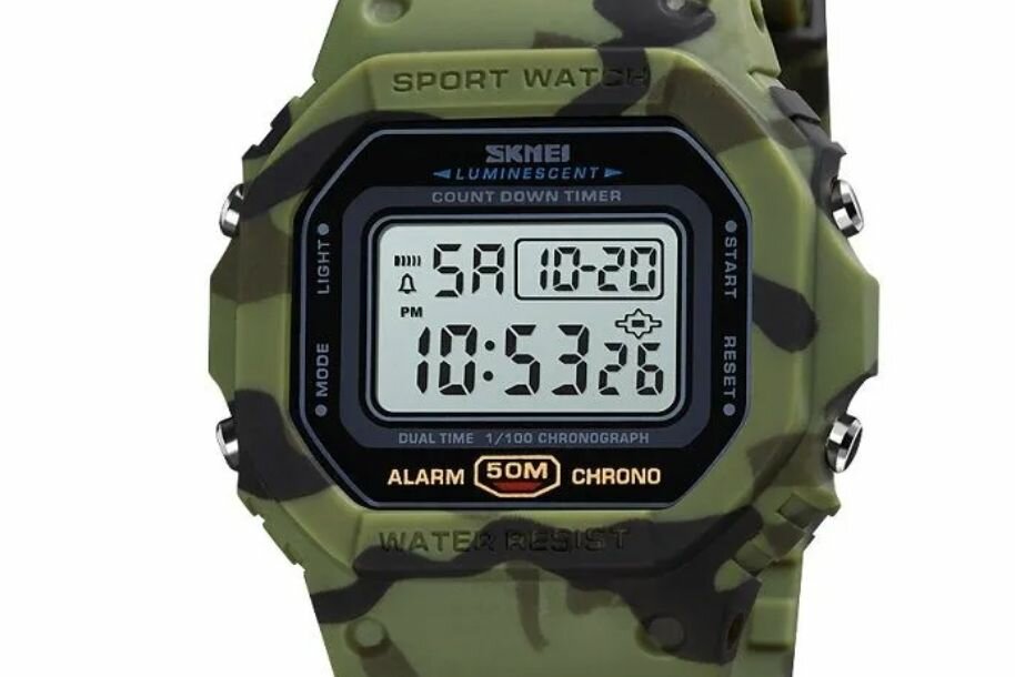 Часы мужские SKMEI 1426, водонепроницаемые, черные/зеленые. Светлый LCD/ 949 ₽