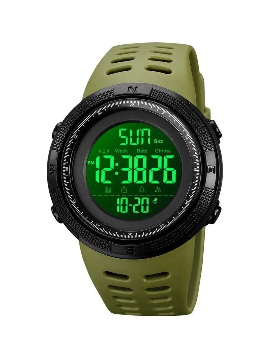 Часы мужские SKMEI 1426, водонепроницаемые, черные/зеленые. Светлый LCD/ 949 ₽