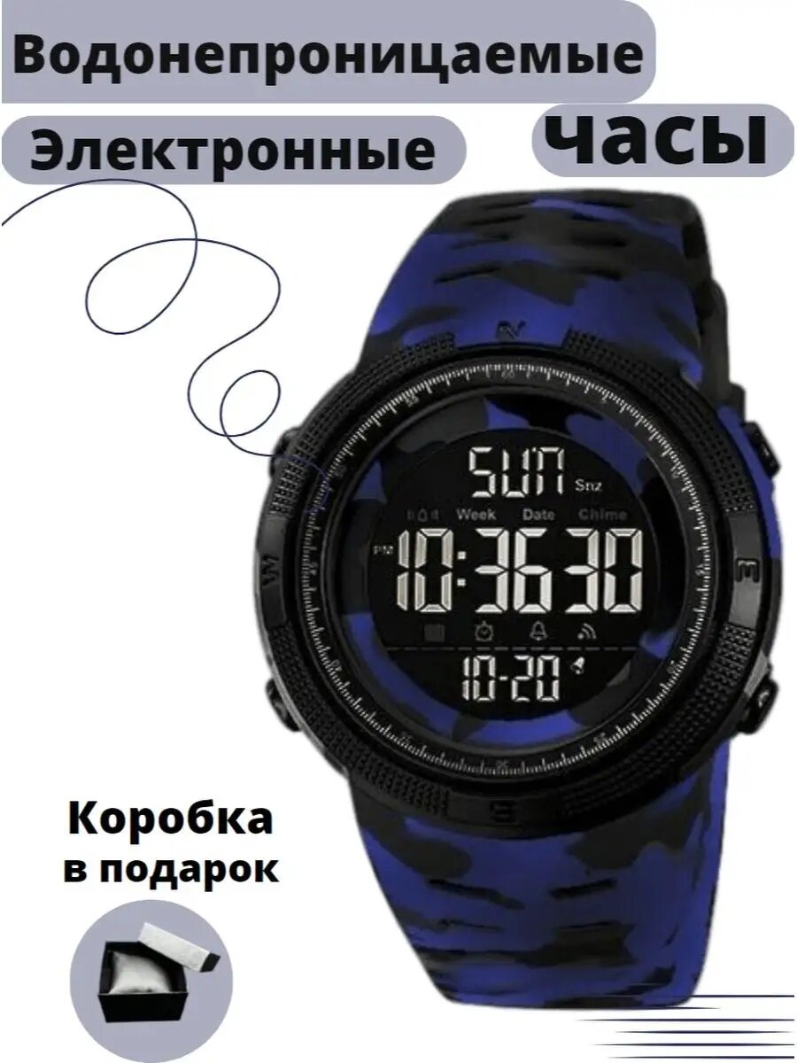 Отзывы на Тактические военные наручные часы Skmei 2070 Черный Дисплей Синий Камуфляж