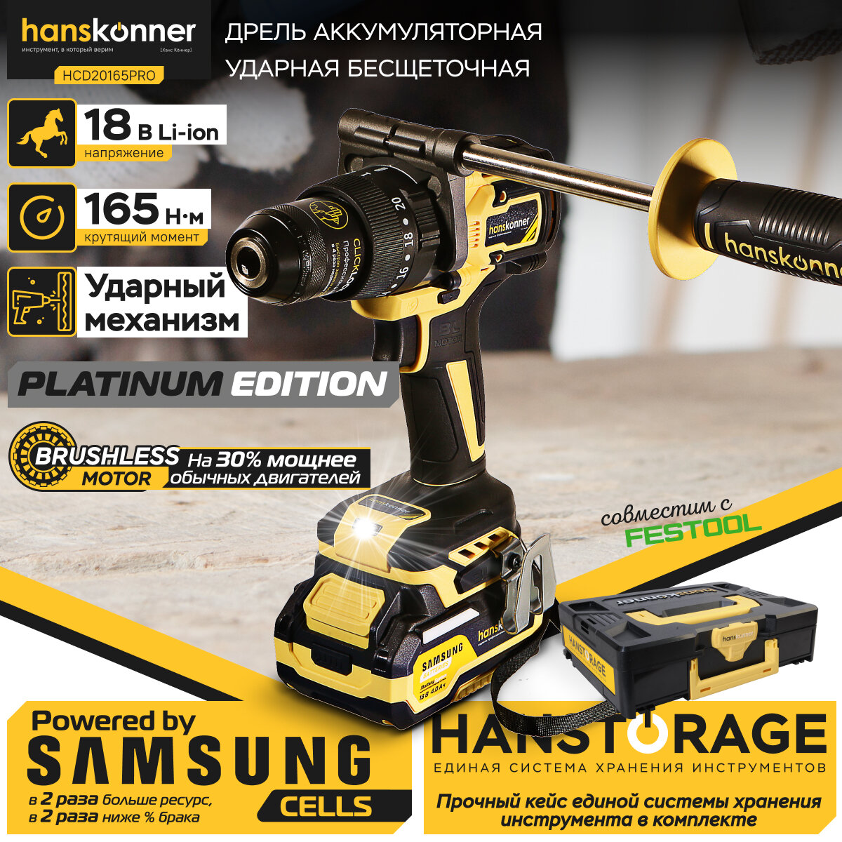 HCD20165PRO Аккумуляторный шуруповерт Hanskonner 1BatterySystem информация: