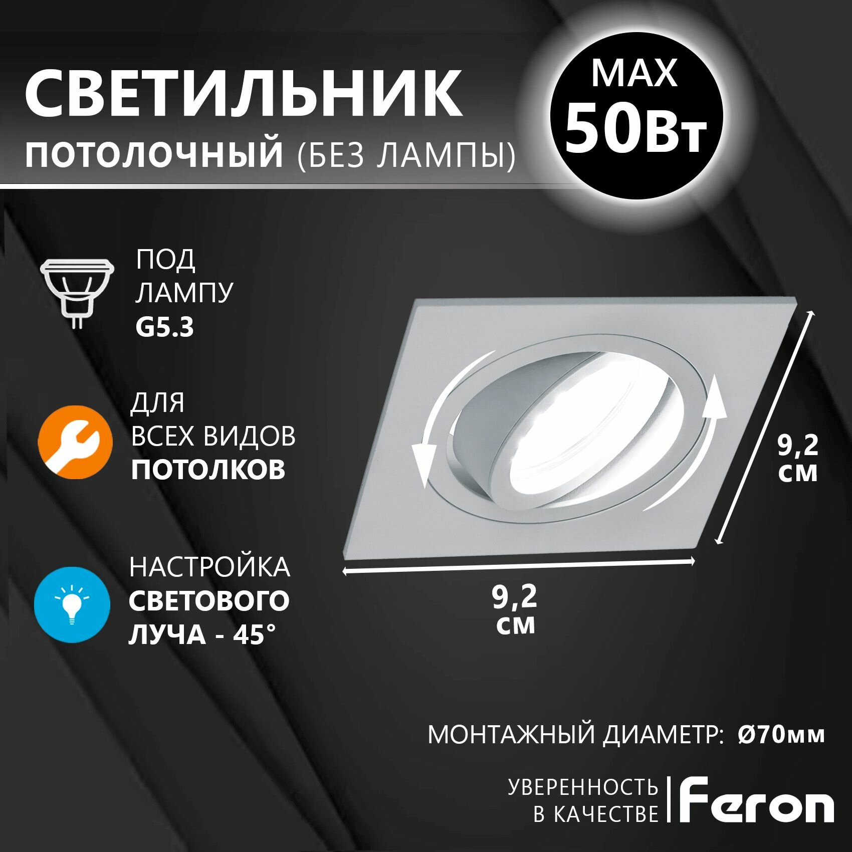 Отзывы на Светильник потолочный встраиваемый, светодиодный, под сменяемую лампу FERON DL2801, 50Вт, MR16, G5.3, белый