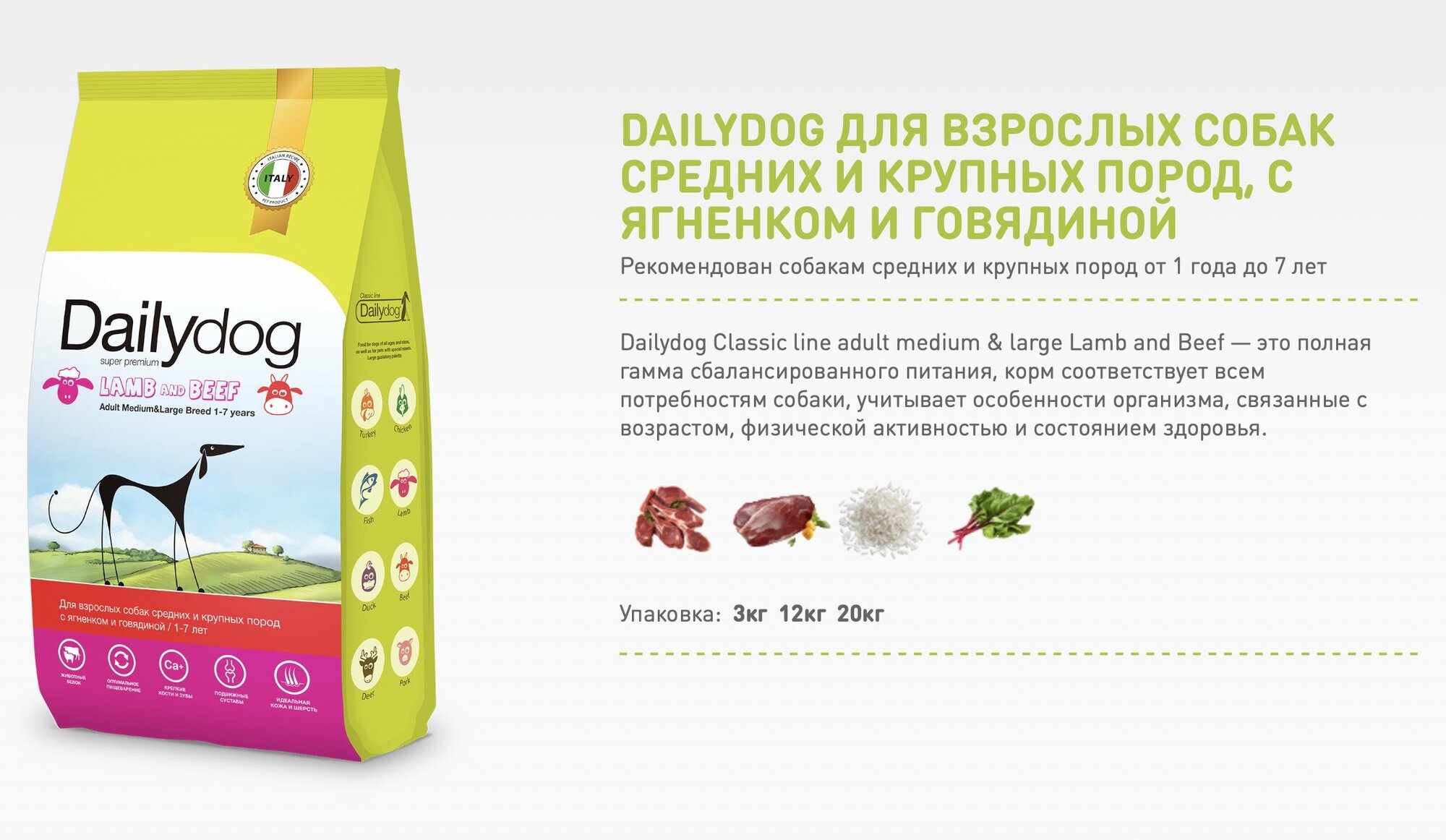 Сухой корм Dailydog для собак средних и крупных пород, с ягненком и говядиной, 3 кг информация: