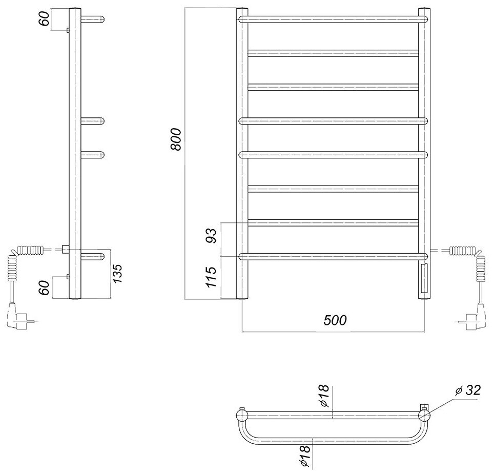 | Дополнительная информация | Полотенцесушитель в сборе 1 шт., Комплект для скрытого подключения 1 шт., Провод с вилкой 1 шт., Кронштейн к стене - 4 шт., Паспорт на изделие |