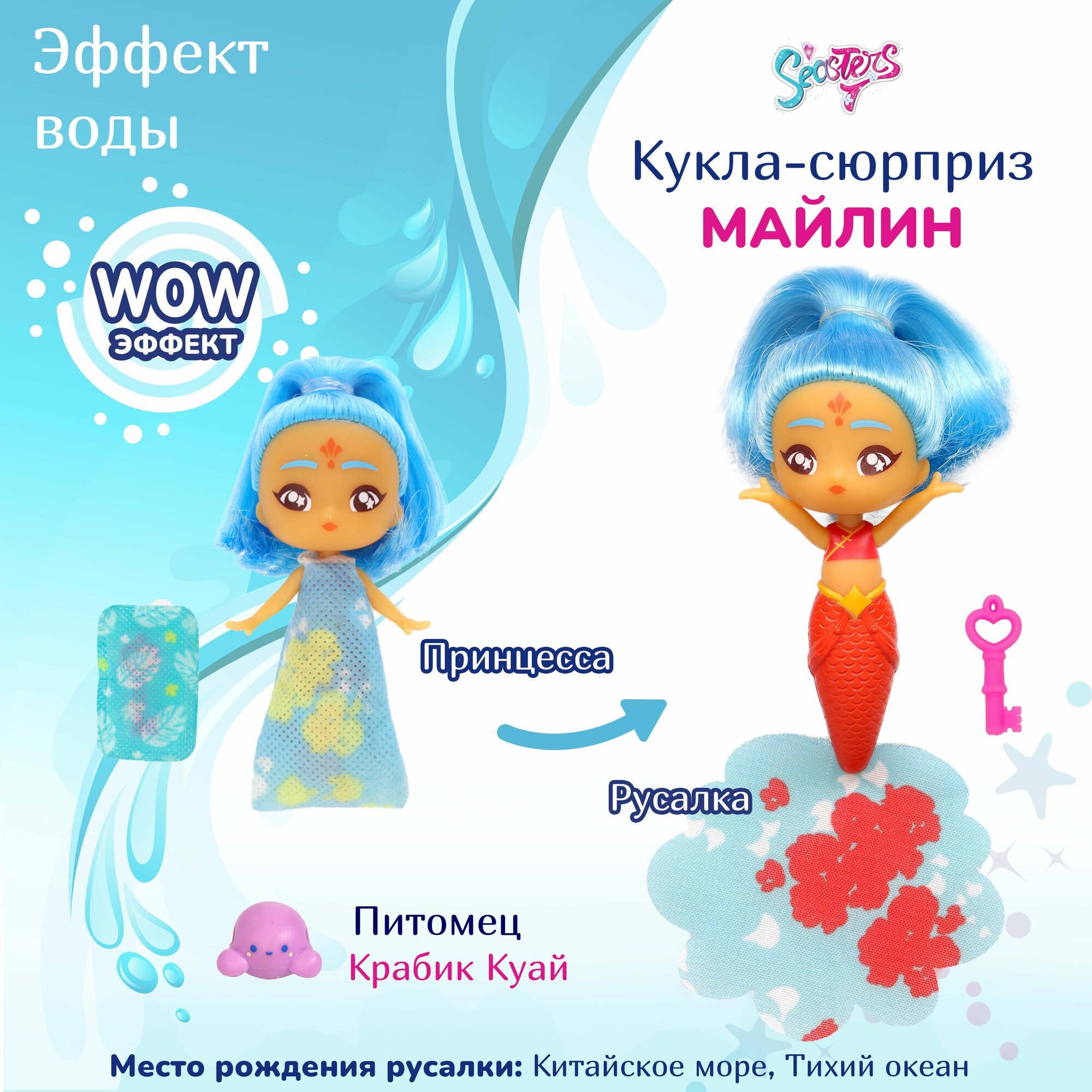 Кукла сюрприз SEASTERS Принцесса русалка Майлин, набор с аксессуарами и питомцем
