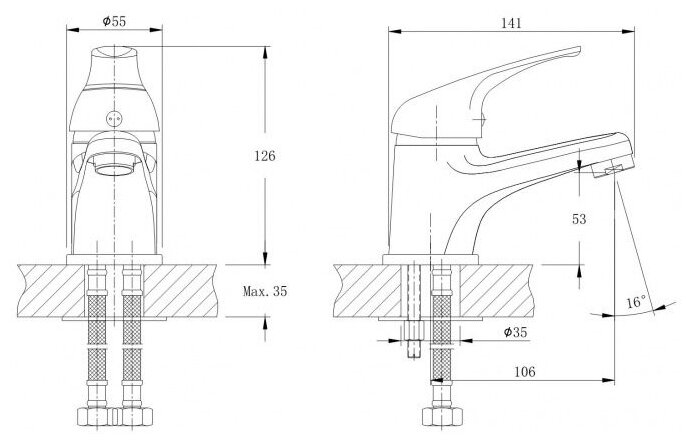 | Комплектация | смеситель, крепеж, гибкая подводка, инструкция |