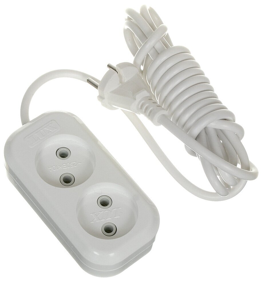 Удлинитель LUX У2-О-03 двухместный без заземления, 250 В 10 А, 3 м (4606400414490)