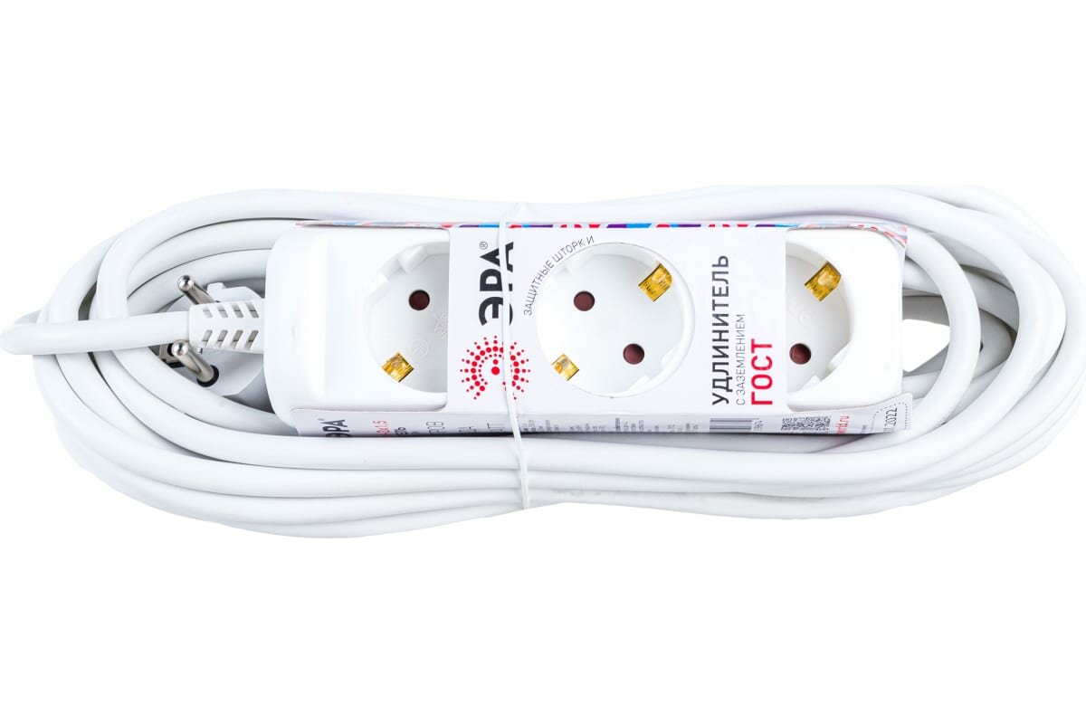 10 цен на ЭРА Удлинитель c заземлением, U-3e-10m-3x1,5 3 гнезда, 10м, ПВС, 3х1,5мм2, 16А
