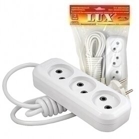 Отзывы на Удлинитель LUX У3-О-02 трехместный без заземления, 250 В 10 А, 2 м (4606400414582)
