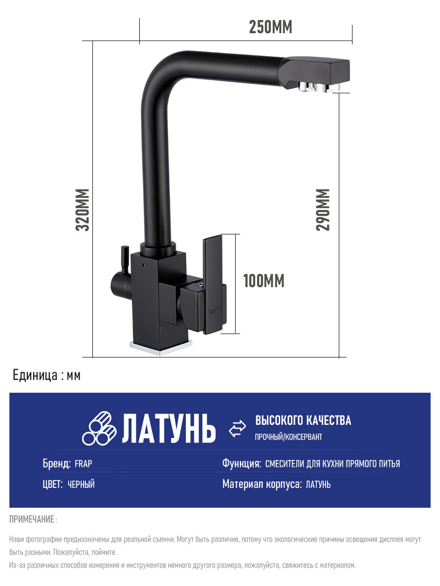 Смеситель для кухни с фильтром кухонный кран для питьевой воды Frap Y40103-2 черный информация: